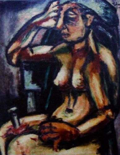 In his oil paintings, one discovers a darker colour palette, reminding us of Caravaggio and Rouault, with a hint of dramatic disenchantment and profound accusation; the nude’s eyes are either avoiding confrontation or lurking the viewers, looking deeply into the viewers’ mind and soul. In both case, one should “accept Telmisany’s art or reject it all together; it is a weakness to praise mildly! Taking part is a necessity” as Rafu wrote. The critic accepts it because “it communicates emotions which in a short glimpse of life, remain forever out of time…we find ourselves in this art because it is created out of an abstract absolute spirit…this art knows its way to our hearts and bleeds into our soul, into whatever is left of it.” (Gharib, 115-116)