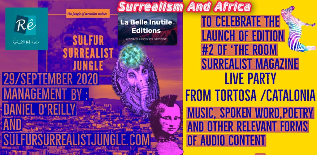 We are looking for music, spoken word artists, and other relevant forms of audio content which respond to the theme: ‘Surrealism and Africa: the Primary Imagination of Ancient Africa’. These will be scheduled into a live event managed by the catalonian artist : Daniel O’Reilly and