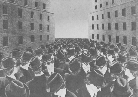 Black and white catalogue reproduction of “Kafka’s Funeral” which was included in the exhibition.
