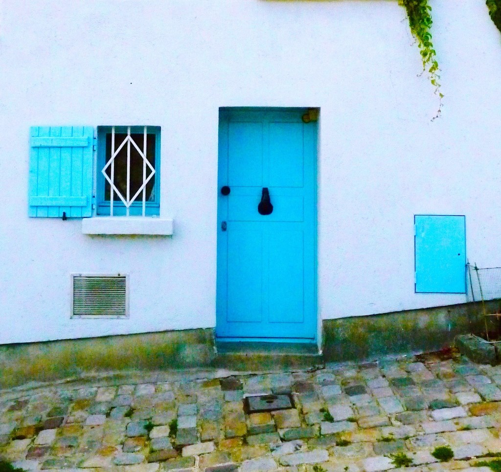 It is a small room, simply furnished, eggshell walls, azure trim.
