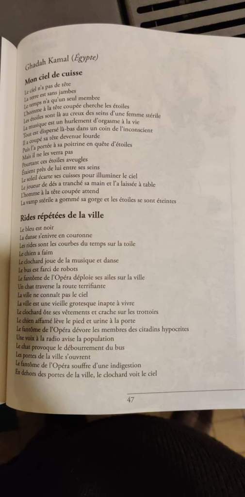 ° Poèmes et textes de Yassir Abdelkawi, Will Alexander, Philippe Bouret, Mario Cesariny, Mohsen Elbelassy, Abdul Kader El Janabi, Onfwan Fouad, Charles Illouz, Édouard Jaguer, Giovanna, Jean-Michel Goutier, Pierre Grouix, Ghadah Kamal, Marc Kober, Victor Malzac, Giorgia Pavlidou, Pierre Petiot, Michael Richardson, Alain Roussel, Axel Sourisseau.