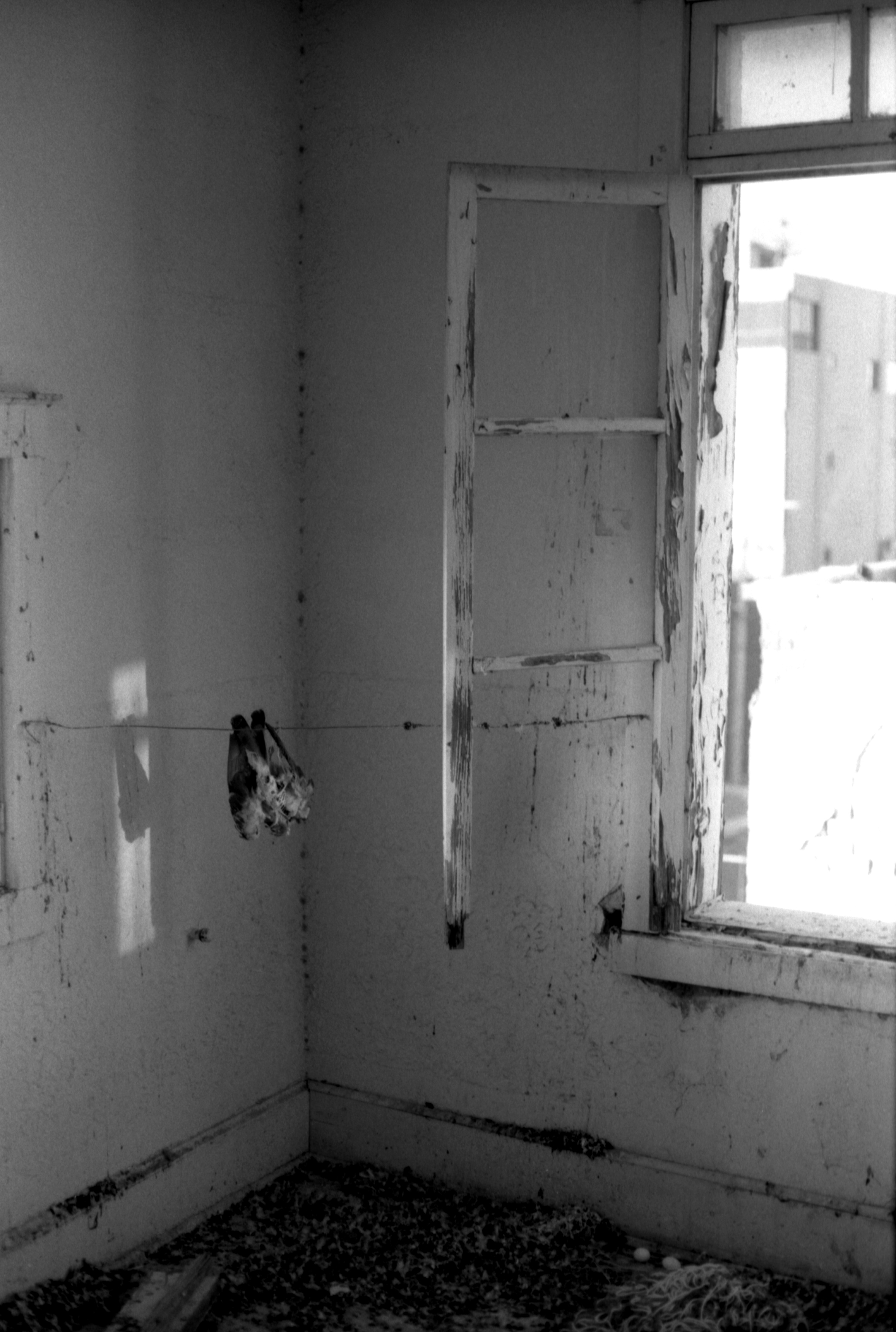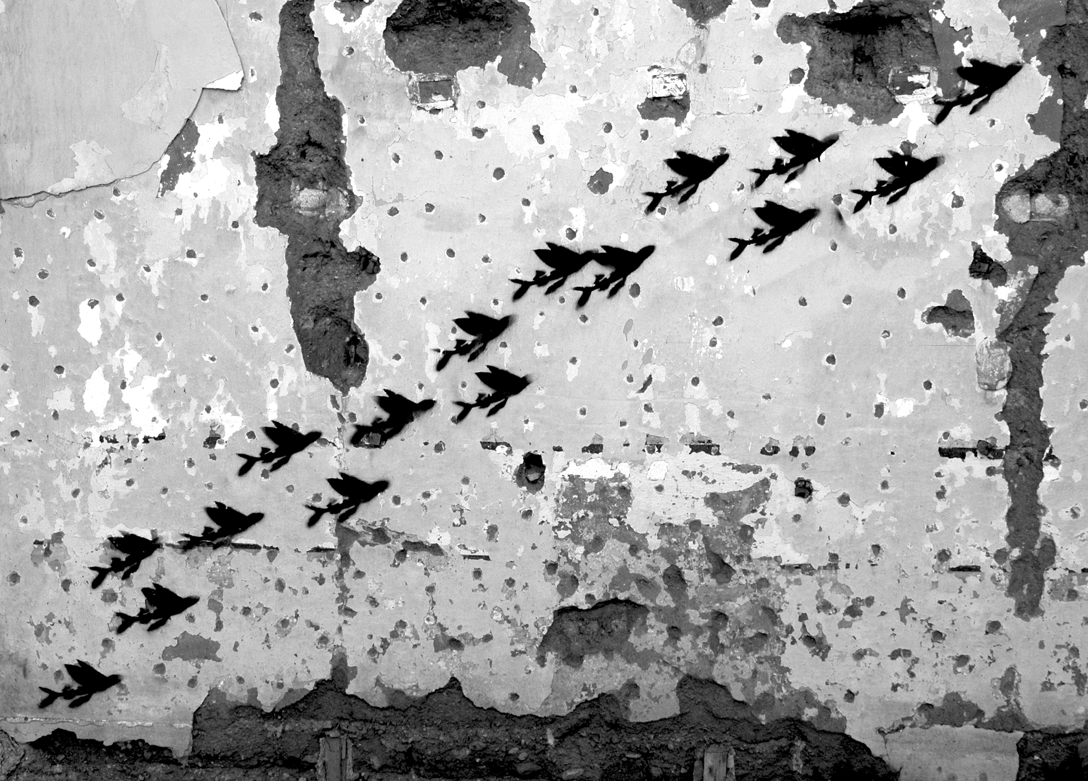 Siempre encuentro pájaros muertos. Obtuve las imágenes que integran esta serie totalmente al azar, como una tirada de tarot: explorando casas abandonadas, en un área clausurada de un viejo hospital, en un jardín ó paseas con tus amigos en coche un viernes por la noche y de pronto ves a un tipo de rodillas, en la plaza principal; con la mirada perdida en una especie de trance y con una paloma muerta entre sus manos. La imagen construida muestra la placa de rayos x de mi brazo roto, combinada con el ala de una paloma muerta que encontré tirada en una parada de autobús. Los únicos pájaros que vuelan aquí están pintados en un muro viejo, no están vivos. Esta serie no fue un trabajo preconcebido, simplemente un buen día, organizando mi trabajo, noté que las imágenes de pájaros muertos eran recurrentes. Siempre me encuentran.