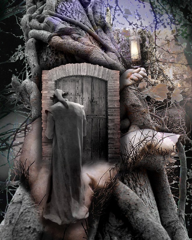 Sometimes my images are simply daydreams like in Au Bord de L’Abysse, or romantic images that I construct from my photos of sculptures of women, often made in Père Lachaise cemetery in Paris or in other Parisian cemeteries.