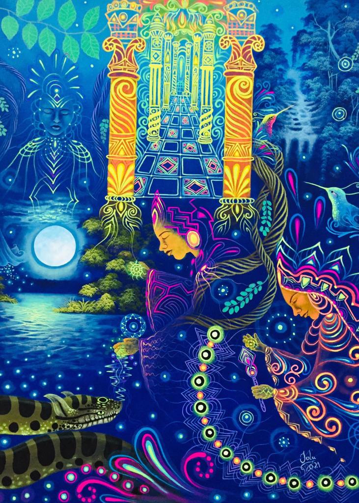 I am Jose Luis Vasquez Gonzales, known as JoLu Amaringo, I was born in the cradle of art on December 5, 1991, in the city of Pucallpa, Peru. At the same my celebrated grandfather, Pablo Amaringo Shuña, flew to Japan to present one of his well known exhibitions on International Amazonian Visionary Art