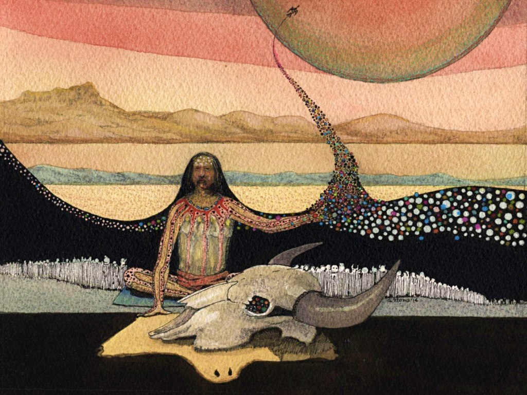 Gerald Stone’s roots flow from 1/2 Seminole and 1/8 Cherokee tribes: These worlds are, out of time, landscapes within landscapes, tribes, spirits, watchers, seekers, giants, red-haired women, murdered and missing, space stretched and bent, stories vibrating across time.