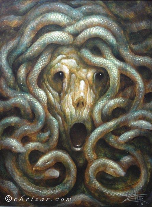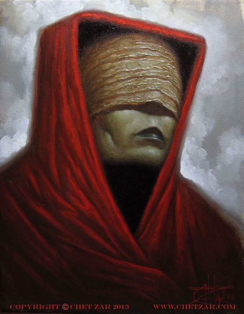 But the many years spent dealing with all of the politics and artistic compromises of the film industry left Zar feeling creatively stagnant. At the beginning of 2000 (at the suggestion of horror author Clive Barker), he decided to go back to his roots and focus on his own original works and try his hand at fine art, specifically painting in oils. The result has been a renewed sense of purpose, artistic freedom and a clarity of vision that is evident in his darkly surreal (and often darkly humorous) paintings.