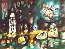 مقتطف من صورة. وهكذا نجد جانبًا آخر لفكر ماتا كما يظهر في سلسلة كاملة من الصور التي ابتكرها في أيامه الأولى ، والتي لا يقدم فيها للعين نقطة تلاشي واحدة ، بل تعدد نقاط التلاشي ، ومن بينها عقل المشاهد على حد سواء إذا كان مضطر للخيار أم لا