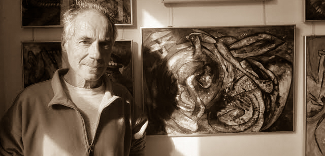 In 1973 at the age of nineteen I was offered my first exhibition, a one man show in London. I had travelled up to London from the farm with a body of my paintings under my arm. The gallery was situated in Hampstead in North London and the owner and custodian of the gallery was a charming lady who had left Vienna in the 1930’s. Her family had been gallerists in Vienna and been instrumental in furthering the careers of many associated with the Vienna Succession. Now in her new residence in London she retained links and connections with Vienna and enthusiastically regaled stories of Oscar Kockoshka and his resent visit. She advised me that I needed someone to open my exhibition and informed me that a neighbour and acquaintance was the painter Conroy Maddox. Without further ado she opened her telephone book and called Conroy saying to him,” I have someone here who paints crazy paintings like you, can I send him over?”. My introduction to the first Surrealist had taken place.