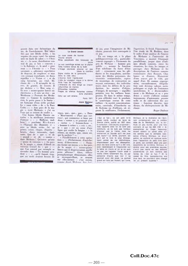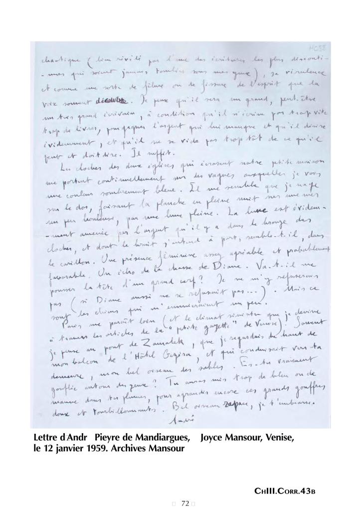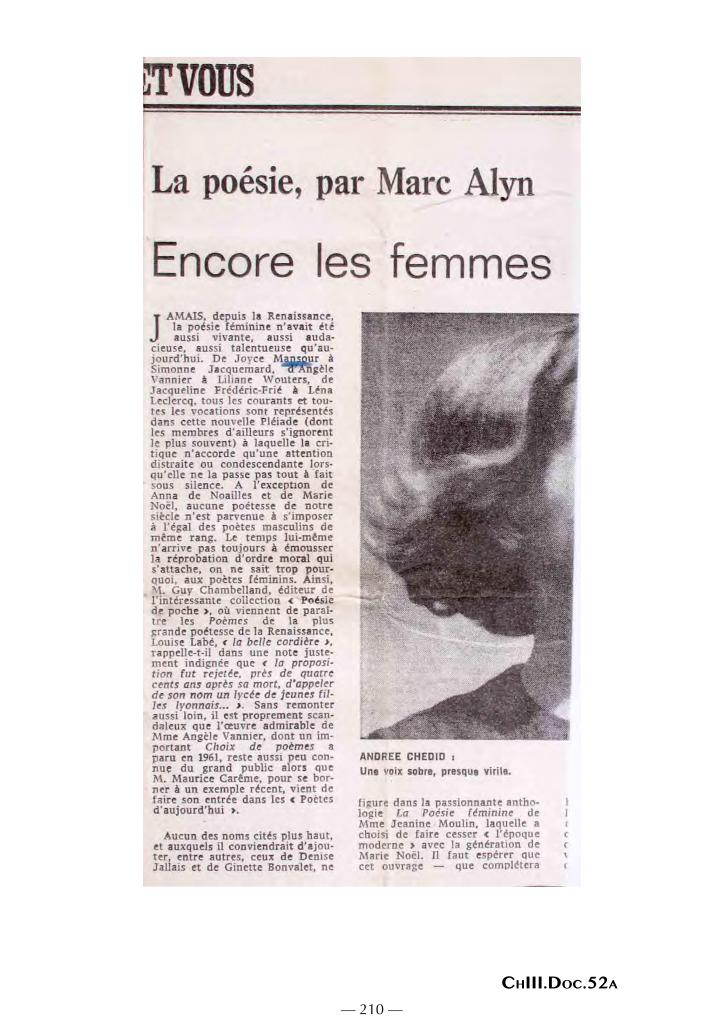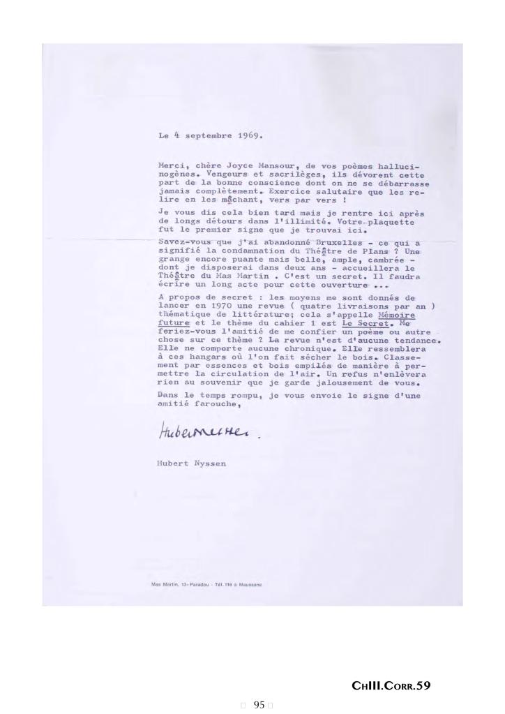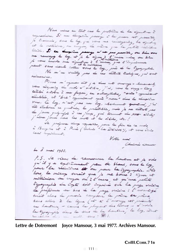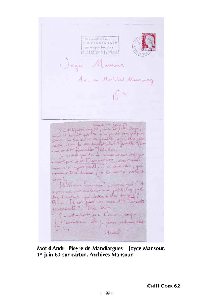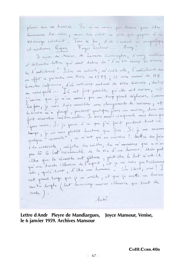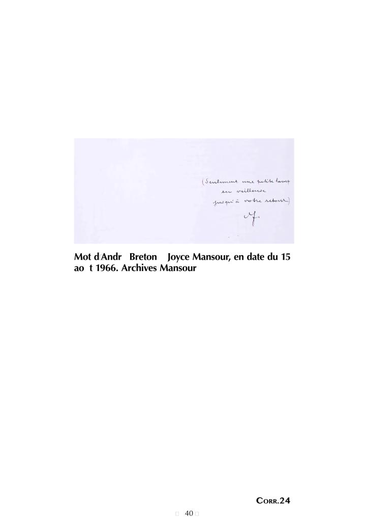 Joyce Mansour is a poet whose metaphorical images emerge from her private subconscious. She sometimes invokes ancient Egypt, its myths, and death together in the context of dramatic and violent confrontations with all suppressors of desire. She seeks death and at the same time seeks to kill it.