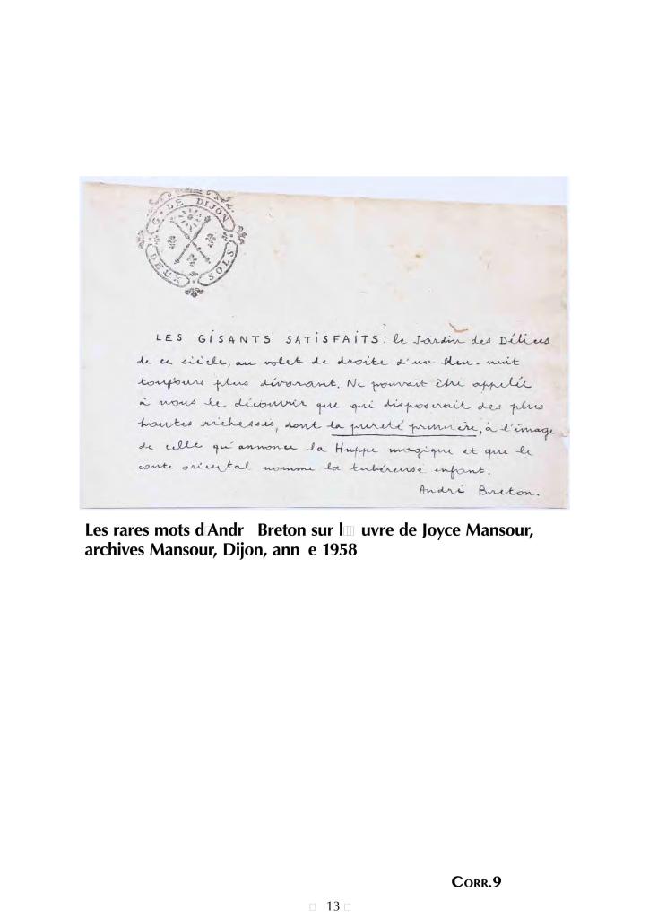 My fascination with Joyce Mansour, but also with Surrealist women in general, began with an urgency on my mind since my participation in the Egyptian Revolution. I realized the extreme revolutionary and social power of Surrealist women and the social impact they had in both oppressive societies and isolated societies.