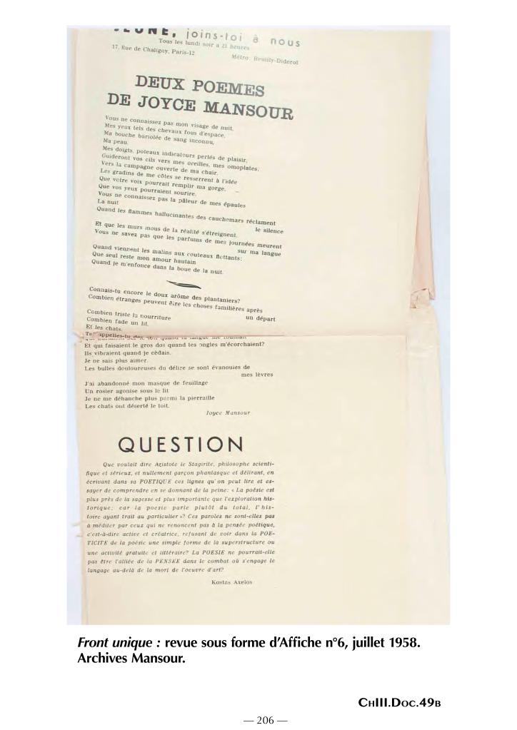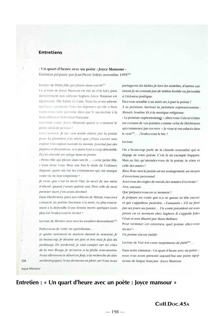 The book, as it digs into the biography of Joyce Mansour’s life and works, also digs into the development of the progressive cultural movement in Egypt from the end of the twenties until the moment of Joyce Mansour’s departure to Paris in the mid-fifties.