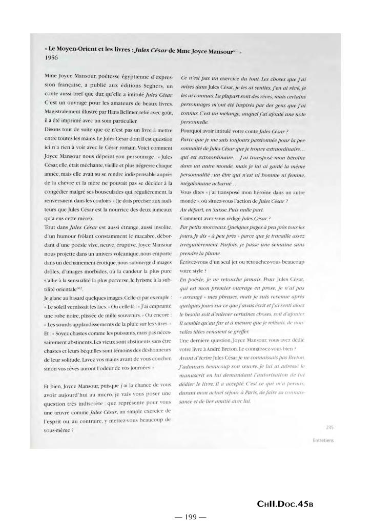 First, before talking about my books about Joyce Mansour, I must clarify that they are two books, not one book