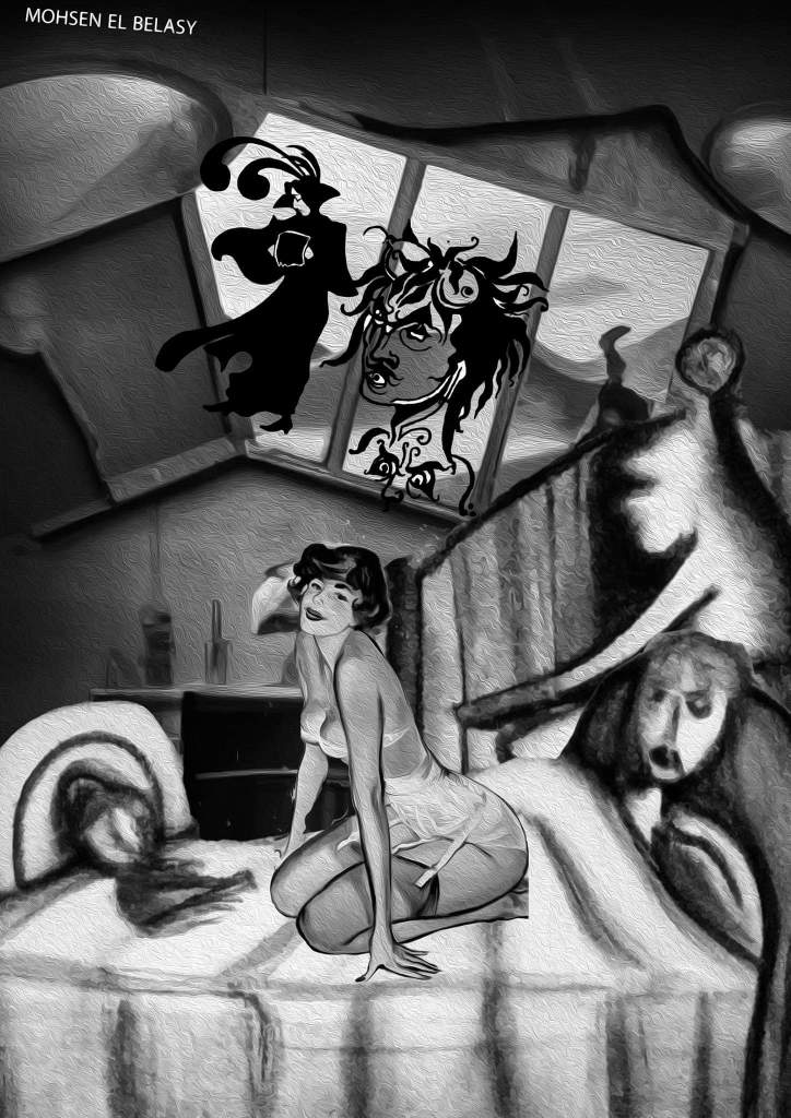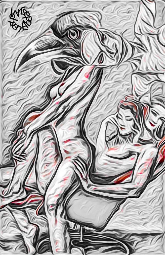 Lycaon’s hunger awakens For his first brutal curse, he hunts, not for the sheep, but for the pulse of the clitoris under the guise of the lynx’s top dress, its kohl-rimmed eyes wide with horror pleasure, its crimson sash is the only color that contrasts with the phosphorescent color of King Lycaon, ruler of the old city’s brothels.