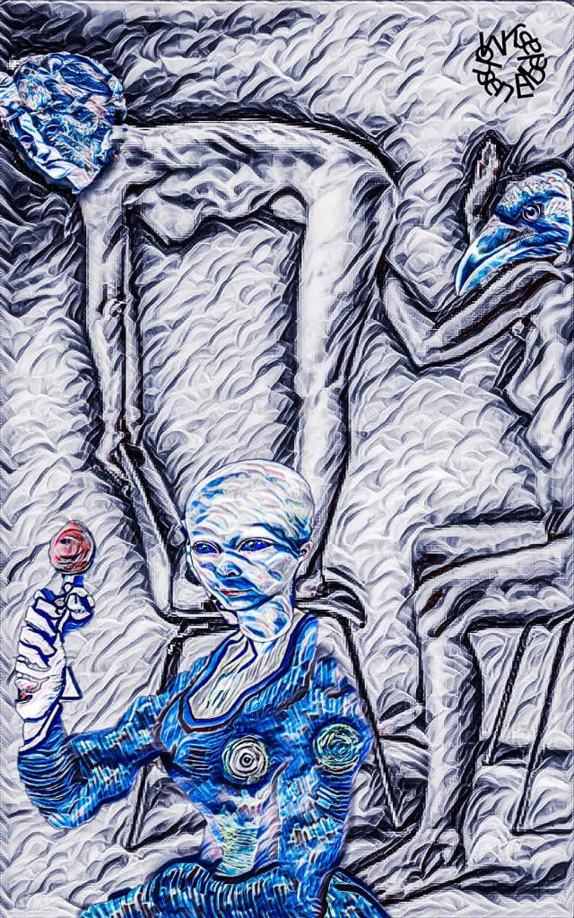 The dance of the hunters -pirates, where the sidewalks whisper forgotten totemic rituals, and the noise of the city turns into a symphony within Laycaon’s veins. Their skin is stained with the mist radiating with screams of ecstasy, their movements are blurred, the scene fades away and a primitive ballet dance is engraved on her forehead, which is painted with a mosaic of the disappearance of the ancient city.