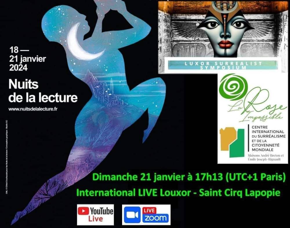 Since 2021, we have successfully organized numerous international events in collaboration with esteemed organizations, including the French Consulate, and the French Institute in Cairo and Alexandria, as well as various Egyptian cultural entities—both official and independent partners. Our most recent event, the “Échoes Surréalistes Contemporains 2024,” was a significant milestone, taking place simultaneously in five cities around the world in April 2024. The surrealist symposium featured locations including Luxor, Saint-Cirq- Lapopie, Toulouse, Budapest, and Alabama, promoting cross-cultural dialogue and artistic exchange